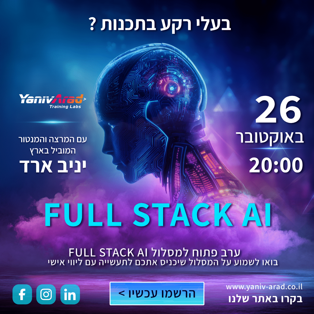 בוא לשמוע בערב הפתוח כיצד לעשות את זה כיום, בעידן ה AI.מסלול Full stack AI שיתן לכם: